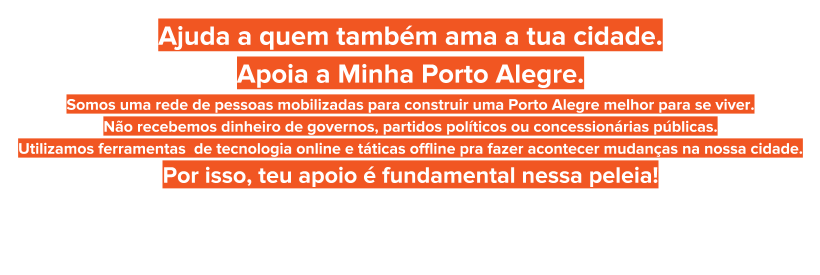 Se tu doares uns pilas por mês, teremos capacidade para aumentar nosso impacto, mantendo uma equipe qualificada dedicada à transformar a nossa capital.